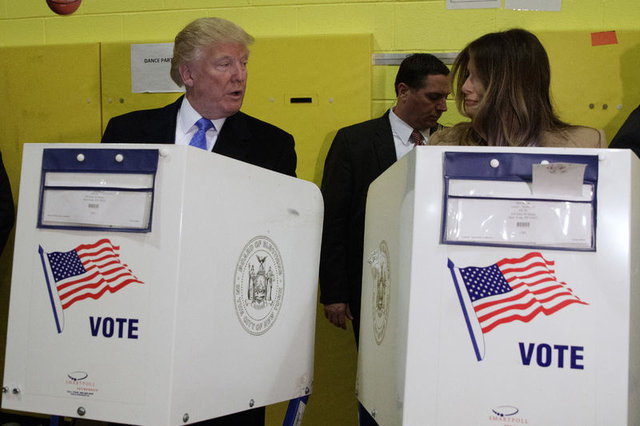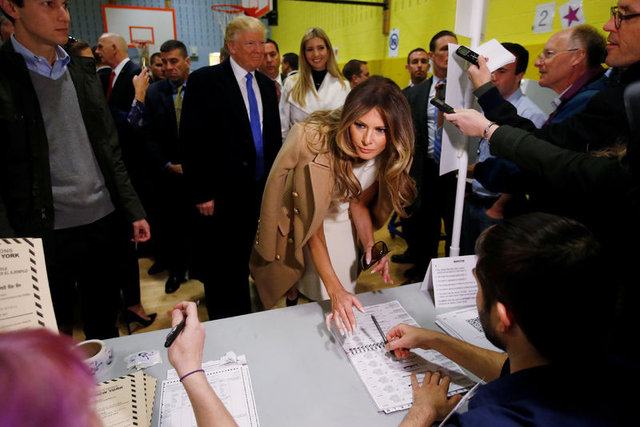 ABD seçimlerinde iki çıplak protestocu, Donald Trump'ın oy kullandığı okulda bir eylem yaptı