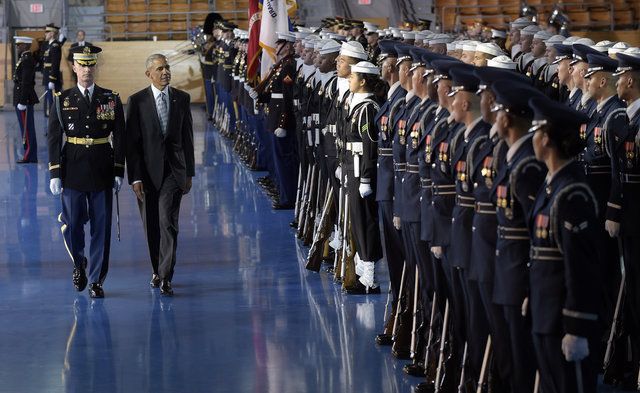 Obama, Virginia eyaletindeki Fort Myer kışlasını ziyaret etti. Obama’ya Başkan Yardımcısı Joe Biden, Savunma Bakanı Ashton Carter ve Genelkurmay Başkanı Orgeneral Joseph Dunford eşlik etti.