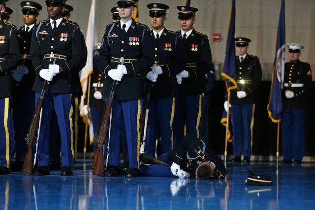 ABD ordusundan bir asker, Obama konuşmasını yaparken herkesin gözü önünde bayıldı ve yere yığıldı.