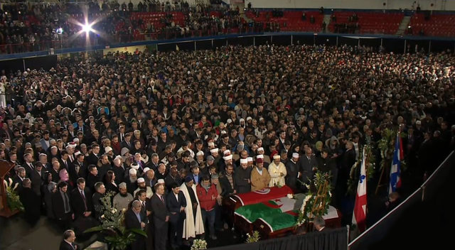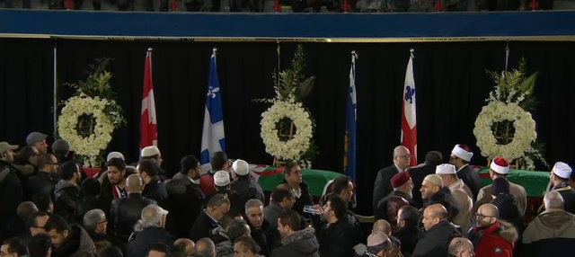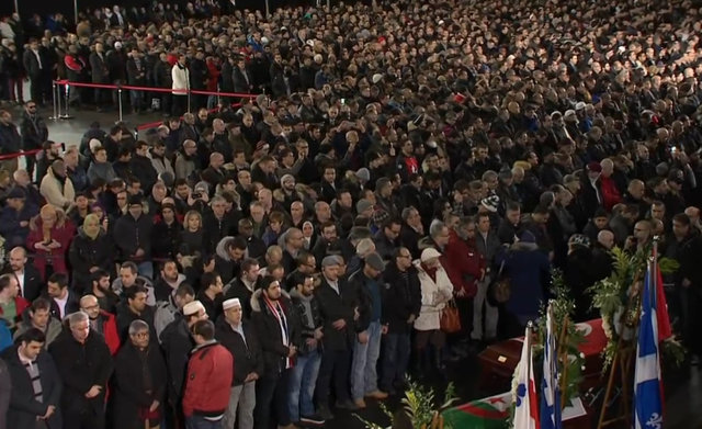 Quebec City kentinde geçen pazar günü yaşanan terör saldırısında hayatını kaybeden 6 kişiden 3'ü Montreal'de düzenlenen törenle son yolculuklarına uğurlandı