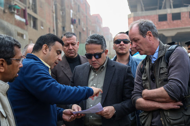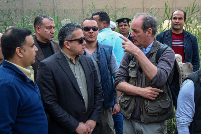 Tarihi Eserler Bakanı Anani, bugün Mısırlı ve Alman arkeologlardan oluşan heyetle birlikte Kahire’nin El-Matariyye bölgesinde heykellerin bulunduğu eski Evn şehrine giderek kazıların yapıldığı alanda incelemede bulundu.