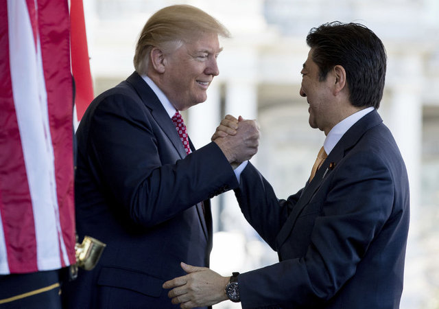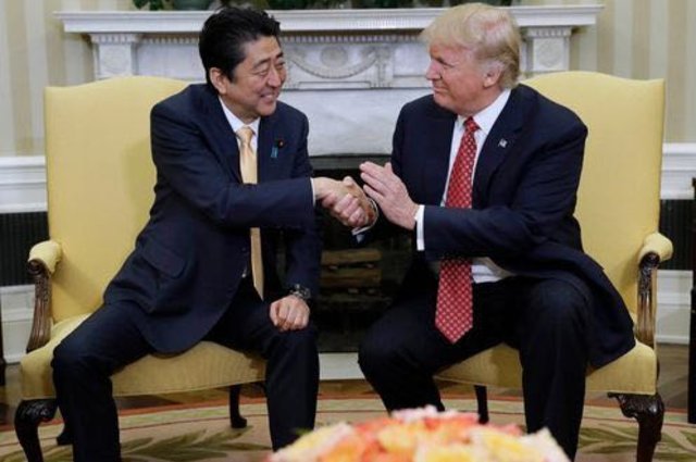Japonya Başbakanı Şinzo Abe ile ABD Başkanı Trump'ın samimi el sıkışması basına böyle yansımıştı.