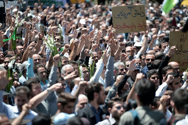 Törende "Suudi Arabistan'a ölüm" ve "ABD'ye ölüm" sloganları atıldı.