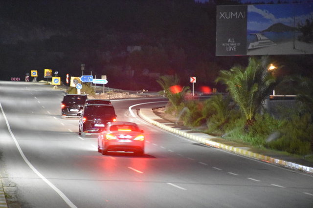Uçağın inişinin ardından havalimanı içerisinde bekleyen 6 VIP araç ve bir otobüse binen aile, iki polis otosu ve güvenlik görevlileri eşliğinde Bodrum ilçesine hareket etti.