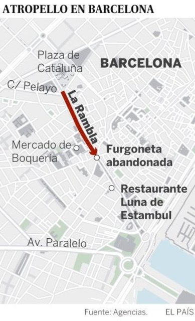 Öte yandan Resmi Katalan televizyonu, ayrıca silahlı birkaç kişinin Las Ramblas'taki Bar Luna de Estambul isimli bir Türk restoranına girdiğini ve kendilerini içeriye kapattıklarını iddia etti. Restoranın ismi, Luna de İstanbul. Öte yandan polis "Restoranda rehine yok" açıklamasını yaptı.