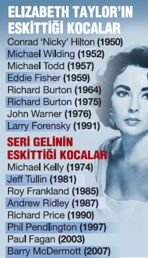 8 kez evlenen Elizabeth Taylor’a İngiltere’den rakip çıktı: 56 yaşındaki Pat Higgins... Şimdiye kadar 8 koca eskiten “seri gelin” 2012’de 9’uncu kez evlenecek. Çevresi tarafından “kara dul” olarak anılan ve her zaman kendisinden genç erkeklerle evlenen Higgins 2012’de 24 yaşındaki tezgâhtar nişanlısı Mark Sanderson’la evleneceğini açıkladı.