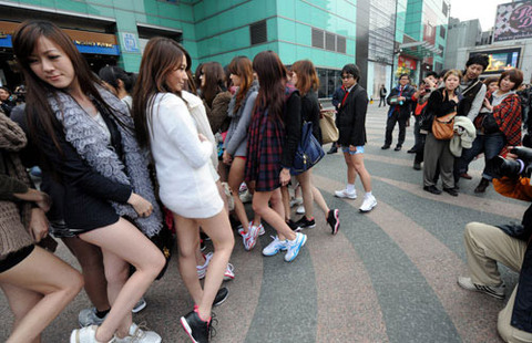 Tayvanlı kızlar kış ortasında üstlerinde paltoları altlarında ise yalnızca iç çamaşırları ile metro bastı. Yüzlerce metro yolcusu ise şaşkındı. Baldırıçıplak eylemciler, olağandışı hiçbir şey yokmuş gibi davranırken, eylemden haberi olmayan yolcular ise şaşkınlığını gizleyemedi.
