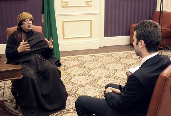 Üzerindeki iç ve dış baskı giderek artan Libya lideri Muammer Kaddafi, dün bir kez daha kamuoyunun karşısına çıktı. Vatan'ın haberine göre; başkent Trablus'ta kendisine yakın Zintan aşiretine mensup gençlere hitap eden Kaddafi, TRT Türk muhabiri Mehmet Akif Ersoy'a da röportaj verdi.
