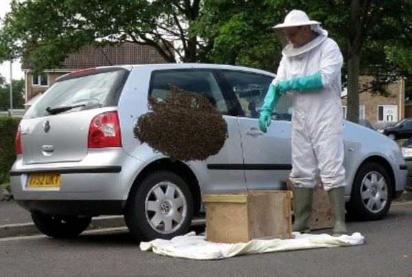 İngiltere'de bir arabanın benzin kapağını saran arılar, çağrılan bir arıcı tarafından kovana sokularak götürüldü