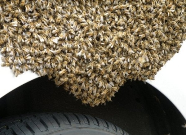 Komşusunun, "Otomobilinin benizin kapağını arılar sarmış" sözlerini şaka zanneden Melissa Dell, aracının yanına gittiğinde gördüğü manzara karşısında şaşırdı.