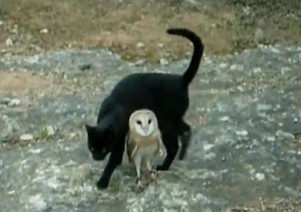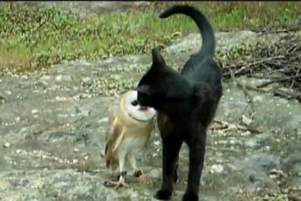 Baykuş ile kedinin şaşırtan dostluğu - VİDEO