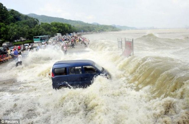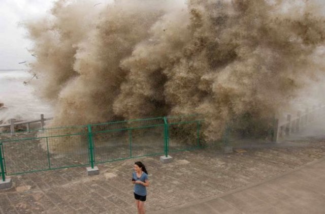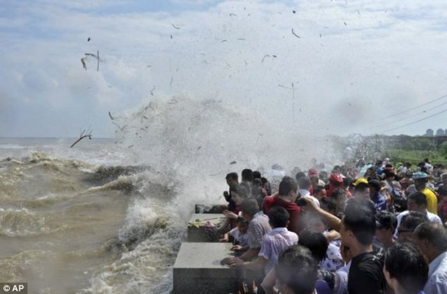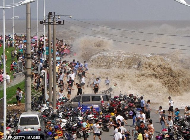 Çin'in Qiantang nehrinde gel-git izleyenler ölümden döndü.