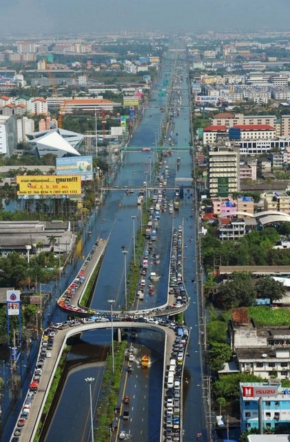 Ay başından itibaren Bangkok'un kuzey bölgelerini istila etmeye başlayan suların seviyesi her geçen gün bir az daha yükseliyor. Denizden ortalama yüksekliği 2 metre olan metropol kentte sular kentin merkezindeki cadde ve sokaklara ilerlemeye devam ediyor. Hayatın durma noktasına geldiği başkentten ayrılmak isteyenler, otobüs terminali ve tren istasyonlarını doldurmuş durumda.
