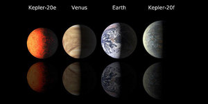 Dünya'ya 950 ışık yılı uzaklığındaki Kepler-20 yıldızının yörüngesinde keşfedilen gezegenlere, ''Kepler-20e'' ve ''Kepler-20f'' adı verildi.