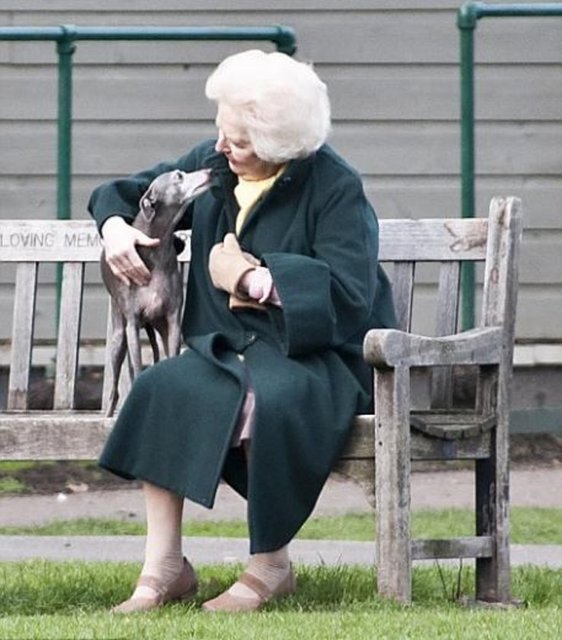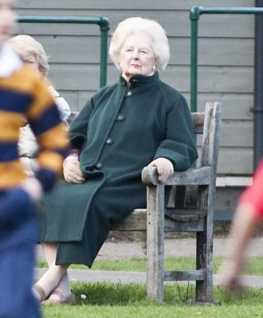 On yıldan fazladır yanında olan yardımcısı Kate’le ilkbahar güneşinin tadını çıkarmak için parka giden Thatcher, fotoğraflarda bir banka oturarak top oynayan çocukları seyrederken görülüyor. Thatcher parkta hayranlarıyla sohbet ederken, yanına gelip banka çıkan bir sokak köpeğini de kucaklayarak seviyor. Efsane başbakanın alışıldık topuklu ayakkabılarının ve vatkalarının yerini, düz ayakkabılar ve bir bastonun alması, ilerleyen yaşının yanı sıra geçirdiği felçlerin de Thatcher üzerindeki etkisinin ağır olduğuna işaret ediyor.