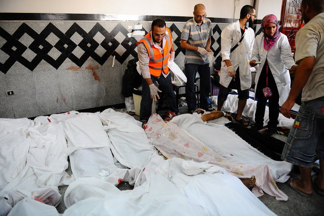 Mısır’da Adeviyye Meydanı’ndaki Mursi taraftarlarına doğrudan öldürmek için ateş açıldı. Saldırı saatler sürdü. Gün boyunca birçok yerde Mursi taraftarlarına saldırılar devam etti. Olaylarda yaklaşık 210 kişi öldü, binlerce kişi yaralandı.