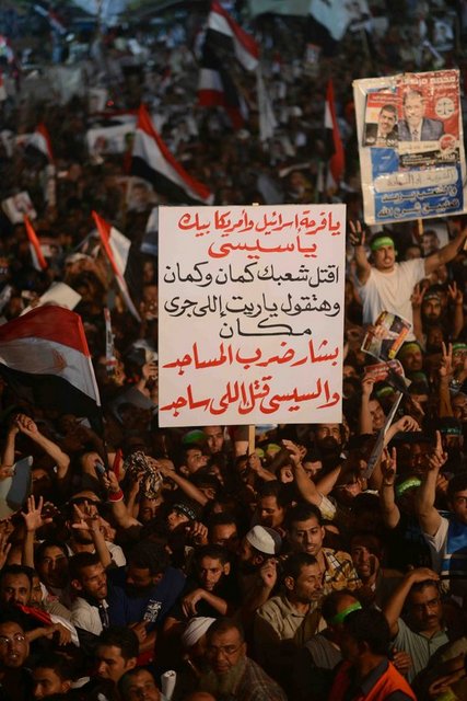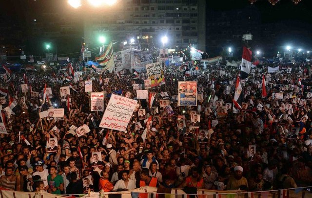Mısır’da Genelkurmay Başkanı Abdülfettah el-Sisi’nin halkı kendisine destek için Tahrir Meydanı’na davet etmesinin ardından ortalık kan gölüne döndü. Sisi taraftarları, başkent Kahire’de helikopterlerin gece boyunca üzerinde zafer turları attığı Tahrir Meydanı’nı doldurdu. Mursi taraftarları da askeri darbeye karşı Adeviyye Meydanı’nda toplandı. Kahire’deki gösteriler gece boyunca barışçıl atmosferde gerçekleşti. Ancak güvenlik güçlerinin Mursi taraftarlarının toplandığı Adeviyye Meydanı’na uzun namlulu silahlarla yaptığı saldırı tüm dünyayı şoke etti. Mursi taraftarlarına birçok noktadan ve çevredeki binaların çatılarına konuşlanan keskin nişancılar tarafından ateş açıldığı belirtildi. Keskin nişancıların Ezher Üniversitesi’ne bağlı Davet Fakültesi’nin üzerini de göstericilere ateş açmak için mevzi olarak kullandıkları öne sürüldü. Mısır’daki askeri darbenin ardından iktidara gelen hükümet açıklama yapmazken, Darbe Karşıtları isimli muhalif cephe güvenlik güçlerini katliam yapmakla suçladı.