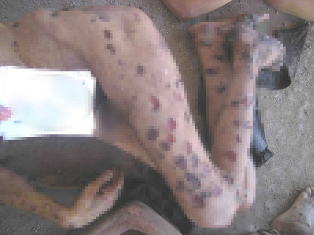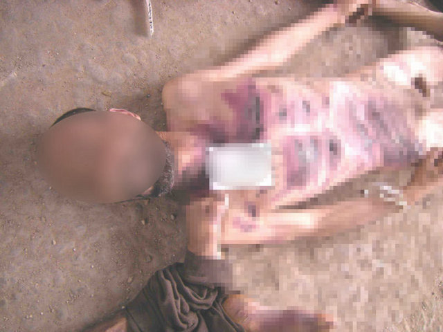 El ve ayakları çapraz bağlanarak işkence yapılıyor