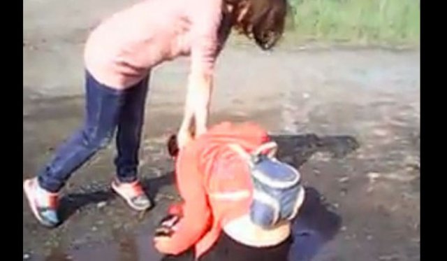 Getirildiği yerde arkadaşları tarafından darp edilen Kholod, bir çamur birikintisinin içinde diz çökmeye zorlandı.