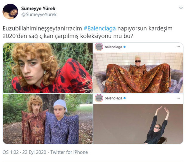 Son olarak Balenciaga'nın yeni sezonundan paylaştığı görünümlere, sosyal medyadan orijinal espriler yapılıyor.