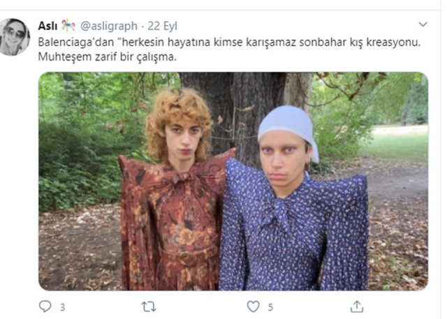 Son dönemin popüler markalarından biri olan ve ünlülerin sıklıkla tercih ettiği Balenciaga'nın kıyafet ve aksesuarları alışılmışın dışındaki tasarımıyla gündem oldu. Markanın binlerce dolara satılan yeni sezon ürünleri sosyal medyanın diline düştü. Bol çiçekli ve vatkalı elbiseler internette pek çok esprili yorumu da beraberinde getirdi
