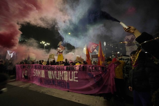İtalya'nın Milano şehrinde bir araya gelen kadınlar gösteri düzenledi.