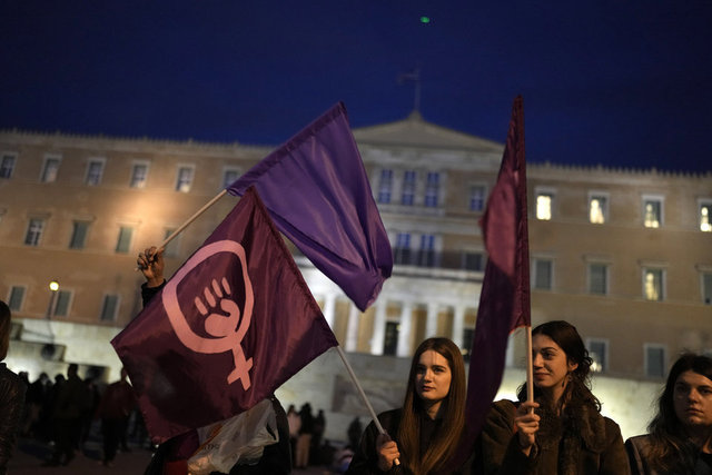 Yunanistan'ın başkenti Atina'da bir araya gelen kadınlar, gösteri düzenledi.