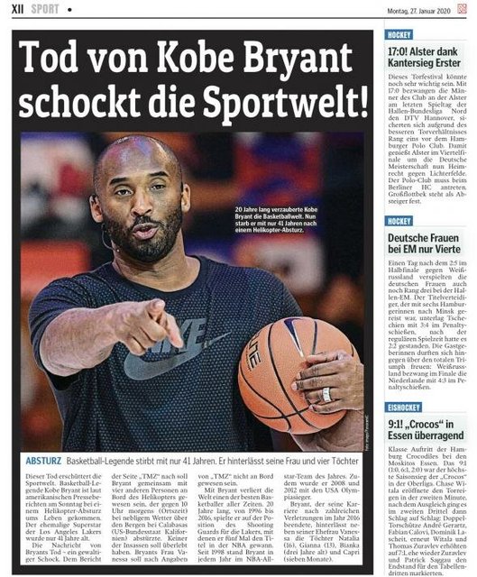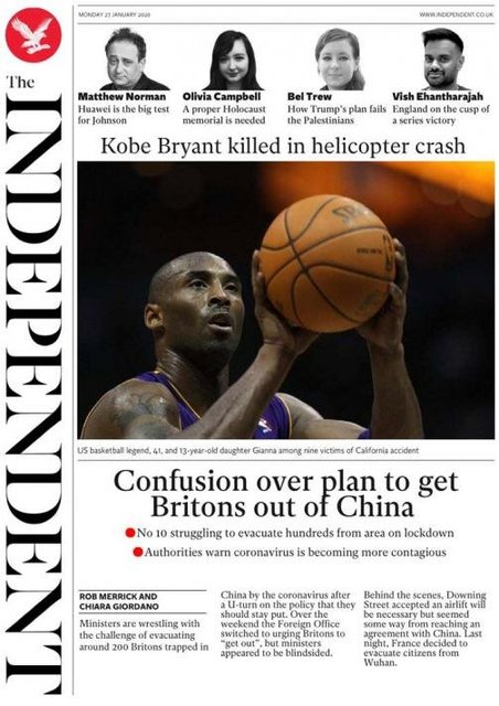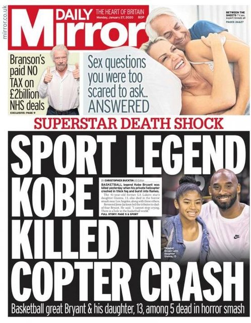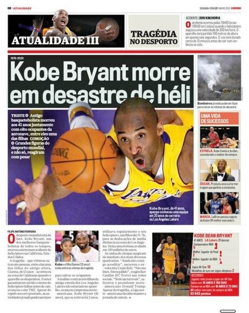 Haberler Spor Basketbol Dünyada Kobe Bryant manşetleri - Basketbol Haberleri
