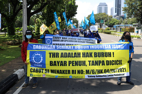 Endonezya’daki kısıtlamalar bu seneki gösterilerde daha az katılıma neden oldu. Göstericiler kişi haklarına ve refahlarına zarar veren bir yasaya tepkilerini dile getirdi.