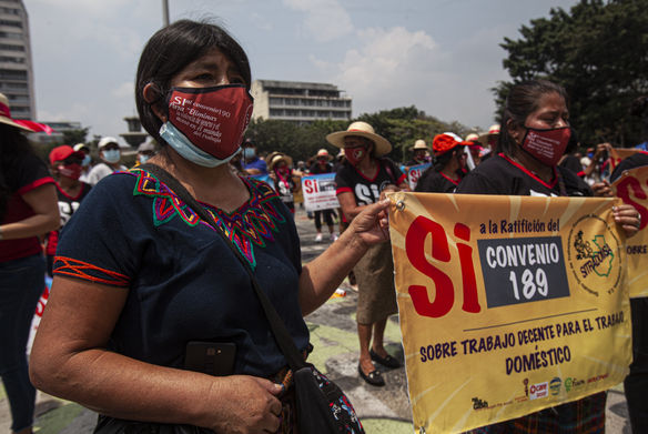 Guatemala'daki göstericiler müzik eşliğinde dans etti ve sloganlar attı. Şehir merkezine pankartlar asıldı.