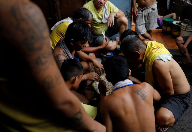 Oldukça kalabalık olan hapishanede yatanlar, genellikle kıyafetlerini birbirinden ayırmak ve yığılı vaziyette duran hamaklarda uyuyabilmek için çaba harcıyor.