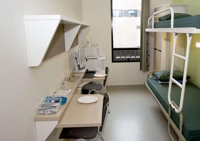 Skien Hapishanesi'nde, mahkumların özel banyoları, televizyonları, video oyunlarıyla spor salonları var.