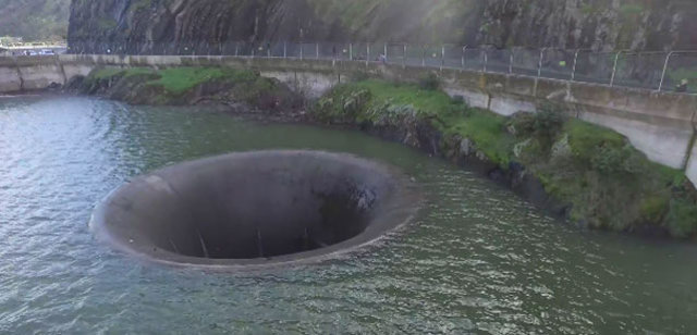 Dolusavağa su aktığında oluşan illüzyon görüntüsü görenleri etkilediği için, delik hakkında acaba bir portal mı söylentileri çıkıyor.