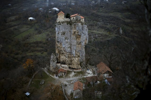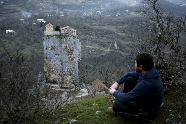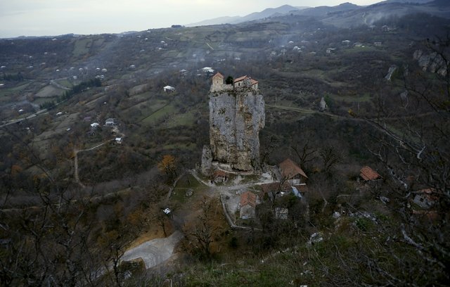 Gürcistan'ın batı kesiminde Çiatura kasabası yakınlarındaki Katskhi dikiti, görenlerde ufak bir şaşkınlık yaratıyor.