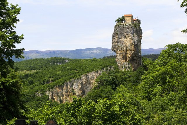 Yaklaşık 40 metre yüksekliğindeki kireçtaşı sütunu olan Katskhi dikiti, bölgenin her yerinden rahatlıkla görülebiliyor.