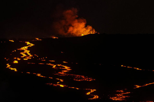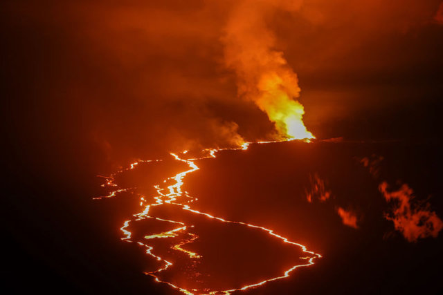 ABD'nin Hawaii takım adalarından Büyük Ada'da bulunan dünyanın en büyük yanardağı Mauna Loa'nın 38 yıl sonra yeniden patlaması sonrası lav akışı devam ederken dumanlar yükseldi.
