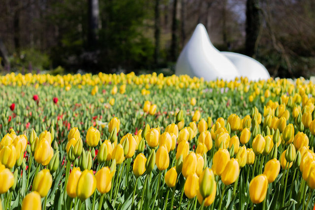 Her yıl yeniden tasarlanan Keukenhof bahçesinin tasarımcısı, moda trendlerinden ilham alıyor ve tasarımda katılımcıların isteklerini uyguluyor.