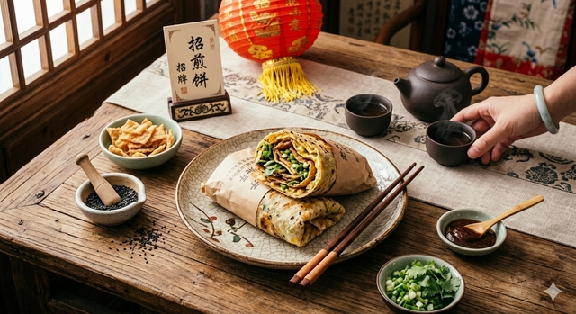 Jianbing, Çin’de sabahın erken saatlerinde sokak satıcıları tarafından sıkça satılan, oldukça sevilen bir kahvaltılıktır. Kızarmış pankek olarak da bilinen bu lezzet, hamurun sıcak döküm sac üzerine ahşap bir spatula yardımıyla ince şekilde yayılmasıyla hazırlanır.