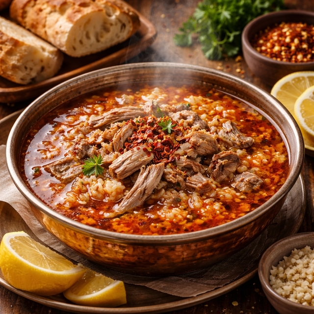 Oldukça acı olmasıyla tanınan bu çorba, güne başlamak için alışılmışın dışında ama oldukça iddialı bir seçenektir. İsteğe bağlı olarak yanında limon dilimleri ve taze Türk ekmeği ile servis edilebilir.