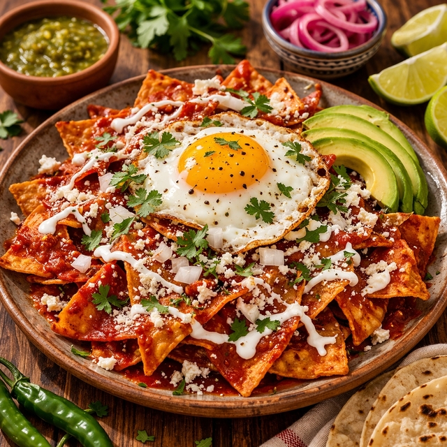 Chilaquiles, en temel haliyle kızartılmış tortilla parçalarının acılı sosla kaplanmasıyla hazırlanan bir yemektir; isteğe bağlı olarak et ve sebzelerle zenginleştirilebilir. Hem Meksika’da hem de Amerika Birleşik Devletleri’nde oldukça popülerdir ve özellikle bayatlamış tortillaları değerlendirmek için ideal bir tarif olarak öne çıkar.