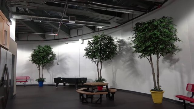 Sığınakta oyun odaları ve ağaçların bulunduğu geniş bir alan bulunuyor.