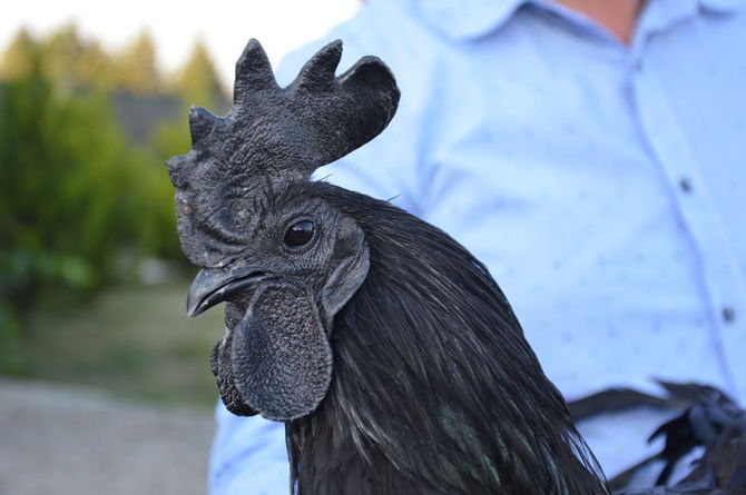 AA'nın haberine göre ibiği, ayağı, gözleri, tüyleri, eti ve iç organları siyah olan ayam cemani tavuğu, 12. yüzyıldan beri Cava bölgesinde yetiştiriliyor.