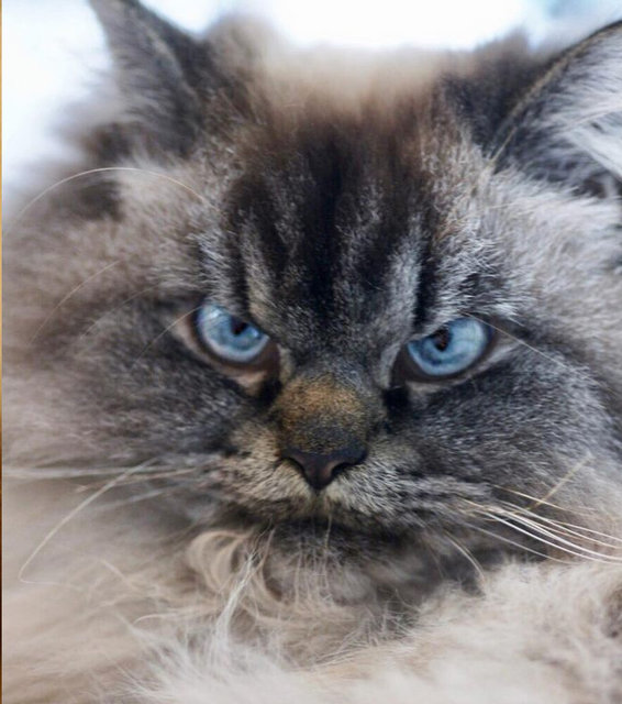 Çatık kaşları ve masmavi bakışlarıyla görenleri az da olsa ürküten kedi Merlin, dünyanın en sinirli kedisi olabilir!