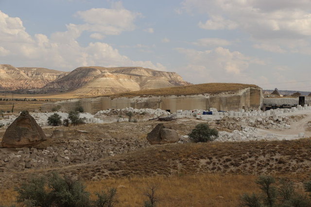AA'nın haberine göre, Avanos ilçesi yakınlarında, peribacaları arasında hizmet sunacak "Kapadokya Müzesi" milyonlarca yıl önce Erciyes, Hasan Dağı ve Güllüdağ'ın püskürttüğü lavların oluşturduğu tüf kaya zemin oyularak inşa ediliyor.