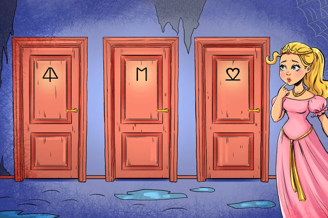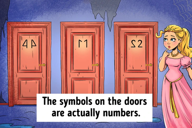 Cevap: Kapıların üzerindeki semboller aslında sayıları gösteriyor. Yani en soldaki kapıda 4, ortadakinde 1, en sağdakinde ise 2 yazıyor. Dolayısıyla prenses en soldaki 4 numaralı kapıdan çıkmalıdır.