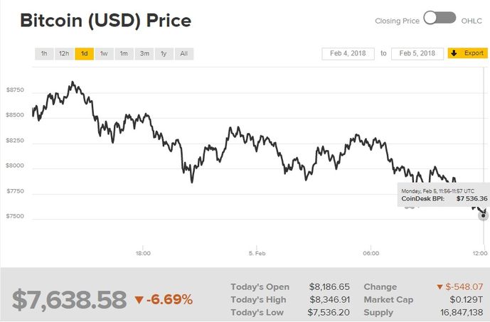 Kripto para birimi Bitcoin'de yaşanan düşüş durmuyor. Geçtiğimiz hafta 8 bin doların altını gören Bitcoin'de toparlanma çabası sınırlı kaldı. Bitcoin fiyatları bugün 7 bin 500 dolarlı seviyelere kadar geriledi