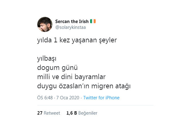 YouTube'da güzellik, moda ve lifestyle üzerine içerikler hazırlayan Duygu Özaslan, geçtiğimiz günlerde Instagram'ından bir paylaşımda bulundu. Bacak fotoğrafını "Yılda bir kez olan migren atağı günü bugünmüş" cümlesiyle paylaşan Özaslan'a komik tepkiler geldi...