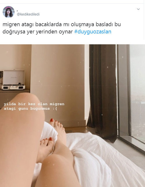 Duygu Özaslan 'bacaklı' migren fotoğrafıyla internetin diline düştü!
