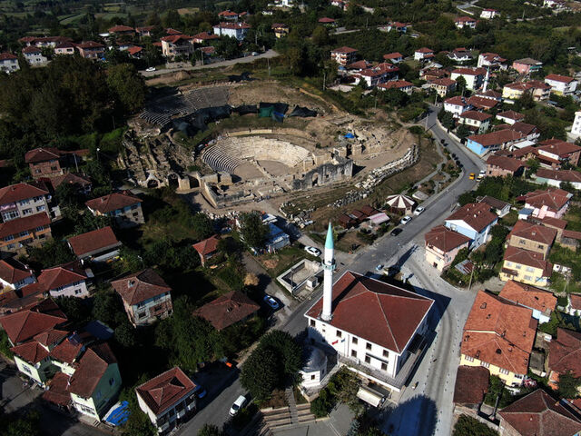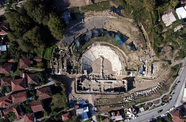 Düzce'nin Konuralp bölgesindeki Prusias Ad Hypium Antik Kenti'nde devam eden kazı çalışmalarında antik tiyatronun sahne binasını yaptıran M. Iulius Proklos'a ait olduğu değerlendirilen portre büst bulundu