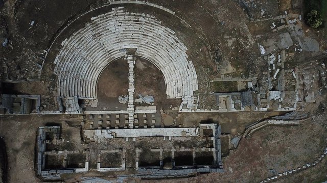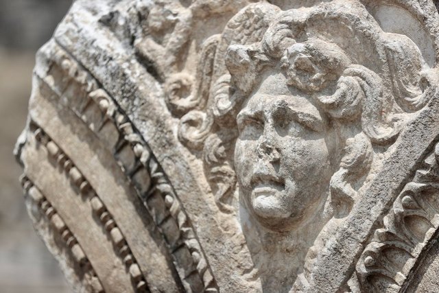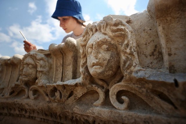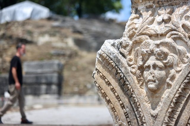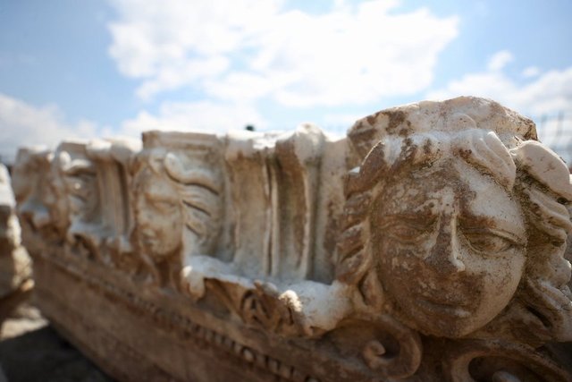 Tiyatro bölümündeki kazılarda şimdiye kadar 2 bin yıllık olduğu değerlendirilen medusa, mask heykelleri ile groteks figürü ve Antik Tiyatro'nun sahne bölümünde tonoz bulundu.